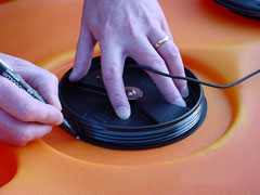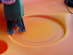 With the drill set on a slow speed, drill a hole slightly bigger than your jigsaw blade a couple of millimetres inside your circle. Now carefully cut out your circle, keeping close to the inside of your drawn line, don't throw away the centre piece it will be handy for testing your adhesives and sealants on before using them on your kayak. Try the hatch outer for fit, it needs to be snug, use a rasp to remove any access material from the hole. When happy with the fit clean up the edges with glasspaper.