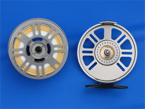 The series of Beulah Large Arbour reels are cast alloy and available in three colours, Silver, Gold and Beulah Green, the reel foot is black. The design is quite stunning, large cut outs in the spool face and holes drilled into the centre of spool to aid fast drying of the line and backing. The handle is plastic with a comfortable finger grip.
