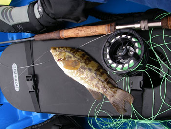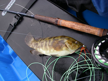 Fish-on, well the Blue Water doesn't make the best of school size Bass, in fact they will hardly put a bend in the rod, but should you be gunning for something a little bigger then the Beulah won't let you down, we had a couple of surprise wrasse fall to the Blue Water and they both gave a good account of themselves producing a pleasing bend in the rod, for those that haven't hooked a wrasse on the fly, they are a very worthy apponent. Given time we would have liked to have tried a sinking line for some deep water Pollack fishing, but time and conditions were against us. The Blue Water 8/9 wt makes a great fly rod for Pike fishing, more than capable of punching large pike flies through the wind.