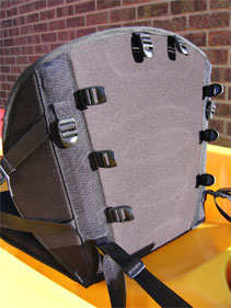 Our first pictures shows the use of the front D-rings turning the seat into a beach/camp chair. The second picture shows the accessory clips on the rear of the back rest.