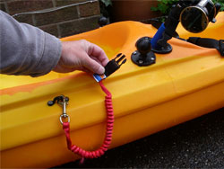 Coiled leash with Scotty Swivel Clips at either end, comes with rubber rod butt ring.