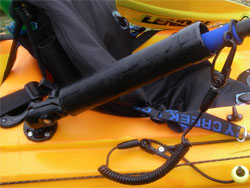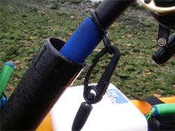 Velcro rod butt strap with bungee and plastic security clip.