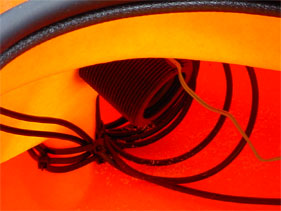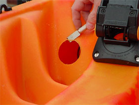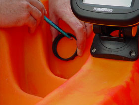 If everything proves OK, using the fixing ring as a guide, draw around the inside edge, producing a circle of approximately 52mm. At this point it is wise to check that there are no obstructions inside the hull, behind the proposed hole. By placing the compass inside the hull, you should be able to see it faintly through the hull and by aligning with the circle guide prove that you are clear of any problem areas.