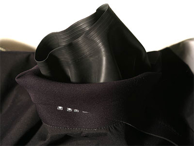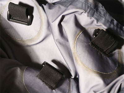 The Velcro flap idea is also used elsewhere. Going back to the pre-bent arms and legs, there is always an element of length difference on arms to be accounted for and this is of more importance on a garment that can’t be buttoned down (as with a shirt). Latex wrists are used to seal the arms to the wrists and ensure internal dryness but this leaves a flap of overhanging material that could prove annoying when paddling or holding a fishing rod. This loose flap is eliminated by securing the Velcro cuffs around the wrist and this provides an extra element of protection in the event that the latex seal is damaged.