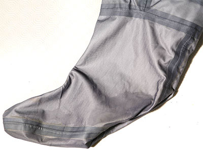 The features and outside have been described fully – so what about inside the suit? A different fabric lines the suit and all seams are taped which avoids any leakage from needle holes in the manufacturing process and this also extends to the interior of the socks, as seen above.