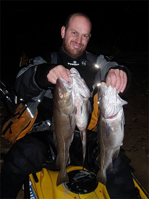 The procedure is the same irrespective of whether I am heading out on one of my fishing kayaks or if I’m taking the Yak Board out for some surfing. Both require a suit that will remain comfortable and keep me dry but the latter gives it more of a workout. It also requires more of a streamlined shape and so I tend to make the final alterations the first time I fall off…by allowing the water pressure to squeeze out more trapped air by opening the neck seal with two fingers, this increasing my flexibility for controlling the kayak or for swimming if I lose it on a wave. I don’t release so much air when fishing however as the excess warms up slightly as well as giving some added buoyancy.