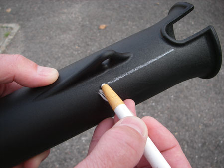 First thing required was to remove some of the leash retainer on the back of the RAM mount, so out with the chinagraph to mark the area to be removed.