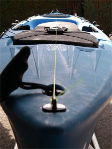 So that we fitted the compass centrally and in near perfect alignment allowing for the most accurate compass bearing we tied a length of shock leader from the drain plug to the rudder, ensuring it was tight.