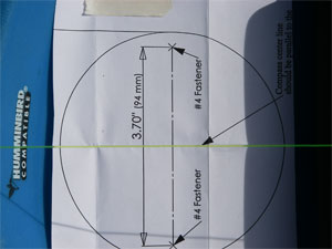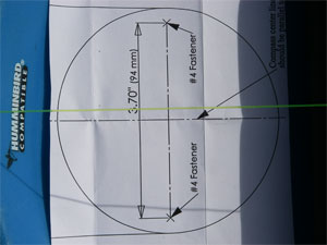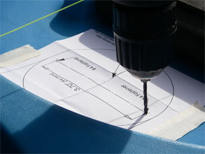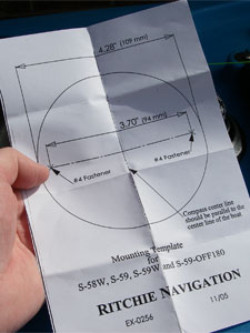 Two mounting holes were then drilled through the paper template in the marked positions. We chose to fix the S-59 compass permanently, one less thing to remember when were in a hurry to launch, so drilled holes to accommodate our M4 x 12mm Pan Head bolts, alternatively screws can be used to allow the compass to be twist locked into position and easily removed.
