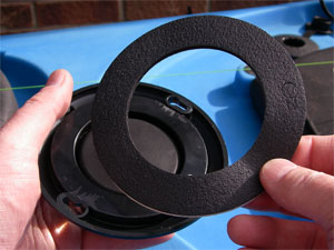 Before bolting to the deck the foam gasket has to be fitted, the two fixing holes have to be pushed out from the gasket before peeling off the backing tape and fitting directly to the base of the compass, ensuring that the holes align perfectly with those in the compass base.