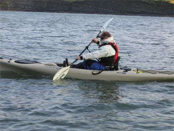 On the water the Ride 135 feels very secure, side onto swell she just floats up and over with little fuss or roll. However heading into the swell the low bow does little to stop water coming over the top and into the cockpit, making for a wet ride in rougher conditions. The wide hull doesn't cause any problems with your paddling technique the low gunwales reducing its effect; this said the Ride 135 requires a bit more effort from the paddler.