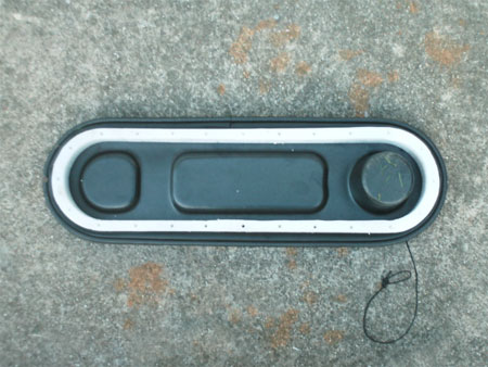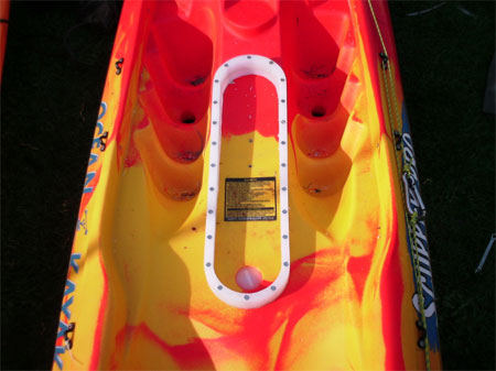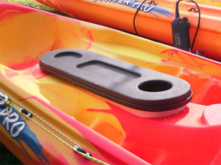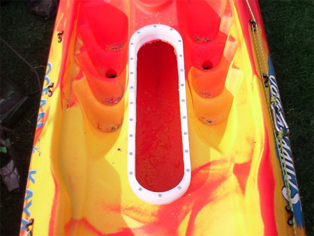 Then fitted 2 straps 1 across the front 1 at the back to hold it down although the seal is very tight as I made it 2mm wider all round than the big games original hatch. Then fitted my paddle keep sail anchor trolley and fishfinder