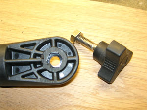 7. As the Scotty moulded head bolt (with the logo), isn't long enough to attach onto the spigot that goes into the mounting bracket you need to trim off and remove the pre installed nut.