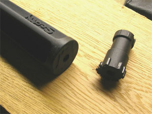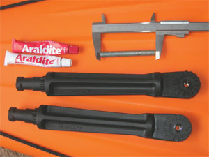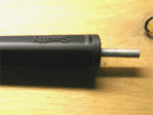6. Take the other extender and wind it on the stud bar against the other Scotty. I add a small amount of Araldite and make sure that the ends are opposite and the Scotty logo's don't match. See picture.