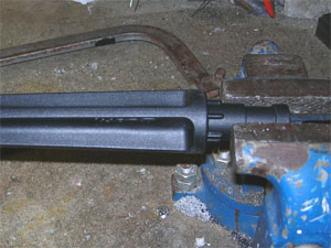 2.Place extender in vice and with a hacksaw carefully remove the end spigot from both of the Scotty's.