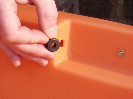 As before we now had to fit the rubber grommets, this is trickier still as you don’t have access to the hull from the inside but you do need to ensure that the grommet is seated correctly.
