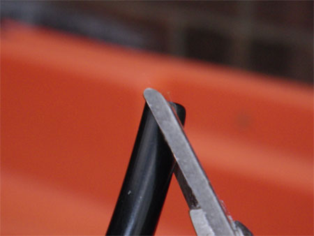 Trimming the tubing at an angle.