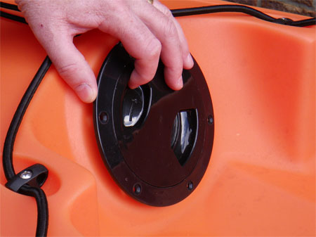 Using a 3/8" drill bit I drilled both holes, one each side. At this point I fitted the smaller rubber grommets which make the control cables water tight. This is the point when you find out how accurate your drilling was as they are an extremely tight fit which requires some careful, forceful, fiddling to get in position, having access to the inside of the hull through the new hatch made life much simpler.