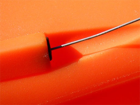 Inserting a length of wire to use as a guide.