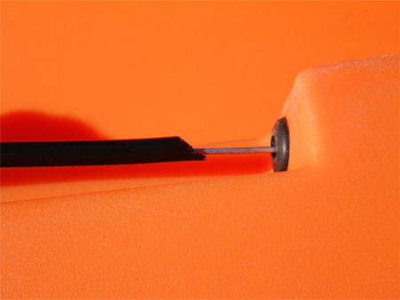 Now its time for the trickiest part of all, fitting the plastic pipe that will protect the rudder control cables. Having a long straight length of wire really helps here, if you don’t have one, then heating up the pipe and try to straighten best you can.
