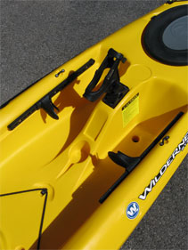 Other things to note around the cockpit are the adjustable TriggerLock Footbraces, tankwell bungee for securing a tackle box, strangely this is over the rear set of cockpit scupper holes and in the wet zone so worth ensuring that the box is watertight. Between your legs in the raised section of the cockpit is one of two six-inch hatches with rubber covers, the other hatch fitted centrally behind the seat. Either side of the seat is a rod/paddle park, with quick release tab.