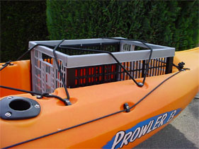 Next job was to tie a length of bungee cord to hold the bait cutting board, again this was placed on the inside of the crate next to the anchor holder.