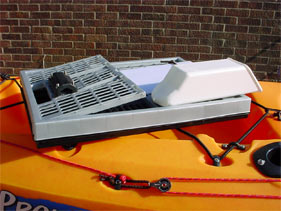 At the opposite end I have fitted a Scotty Mounting Bracket No. 241 and Rail Mount Adapter No. 242, this allows the use of a Scotty SEA-Light No. 824. The holes in the crate had to be filed with a round file to allow the bolts to fit, doing this carefully will also make for a very secure fit.