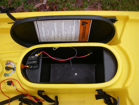 The slot in the tankwell for the Minn Kota Drive System.