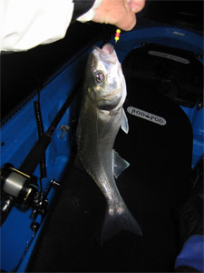 It was going to be a long night, the conger weren't expected to go on the feed for a few hours yet, this gave me time to appreciate the comfort of my new ride, the raised paddle position had kept me high and dry something that most of us appreciate, there is nothing worse than sitting in a puddle. The paddle to the mark had been uneventful, but there had been a continual need to correct my course with an extra stroke on the port side, with her added height in the water she is prone to weather cocking, turning into the wind, a rudder would deal with this problem and is high on my list of priorities.